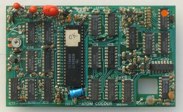 | The Atom is based on the 6502 processor and a 6847 VDU chip. The 6847 is similar to the then popular 6845 CRT controller, but with more functionality on board. The trade off is flexibility. For various IO an 8255 PPI is used. As an option, a 6522 VIA could be installed, which gave Centronics printer support and hardware timers. |