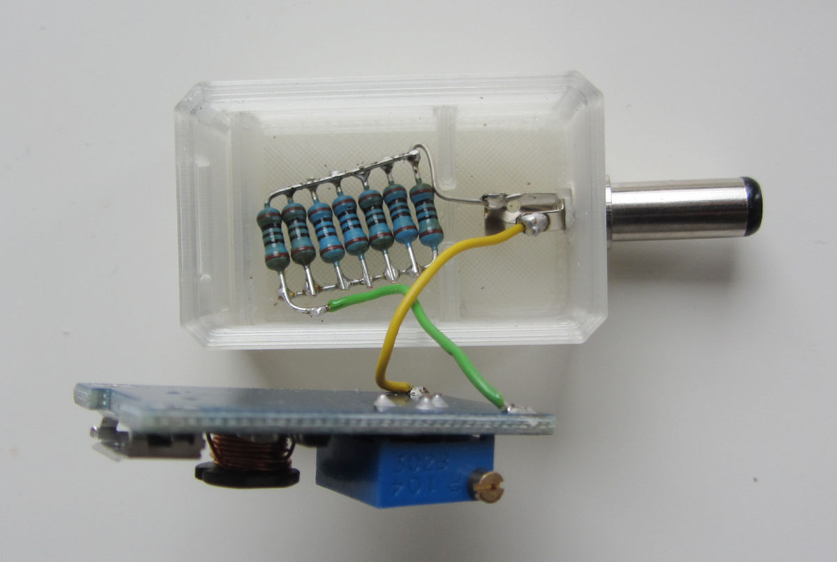As the charging characteristics of the H00AA? adapters can be easily replaced with a 9 Volt power supply and a 14 ohm resistor, one is presented here. An HW-183 board, obtainable cheap from China or a local importer, is set to 9 V.