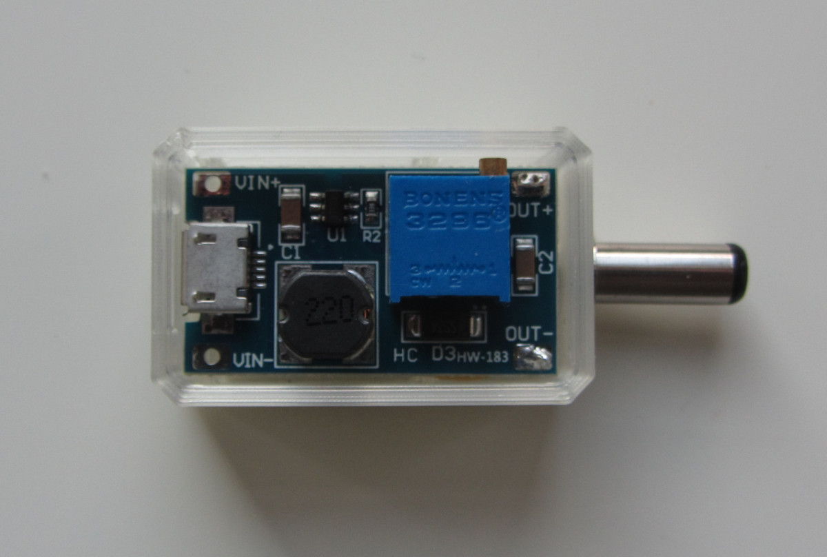 The standard power plug with the Epson portables is 5.5 mm outside, 2.1 mm inside. In this solution, the plug is screwed directly into the 3D-printed case. This is quite compact, but not very robust.