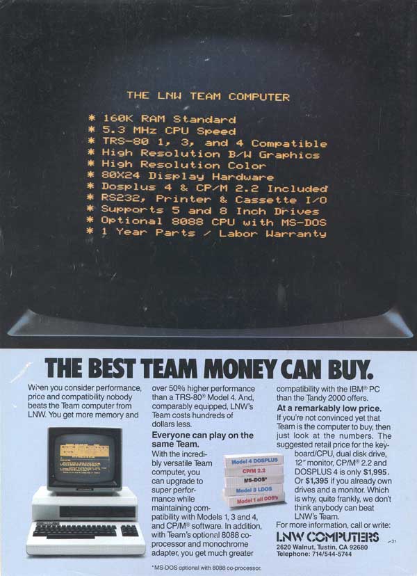 July 1983 LNW starting advertising the LNW Team computer. This machine