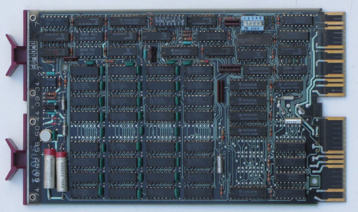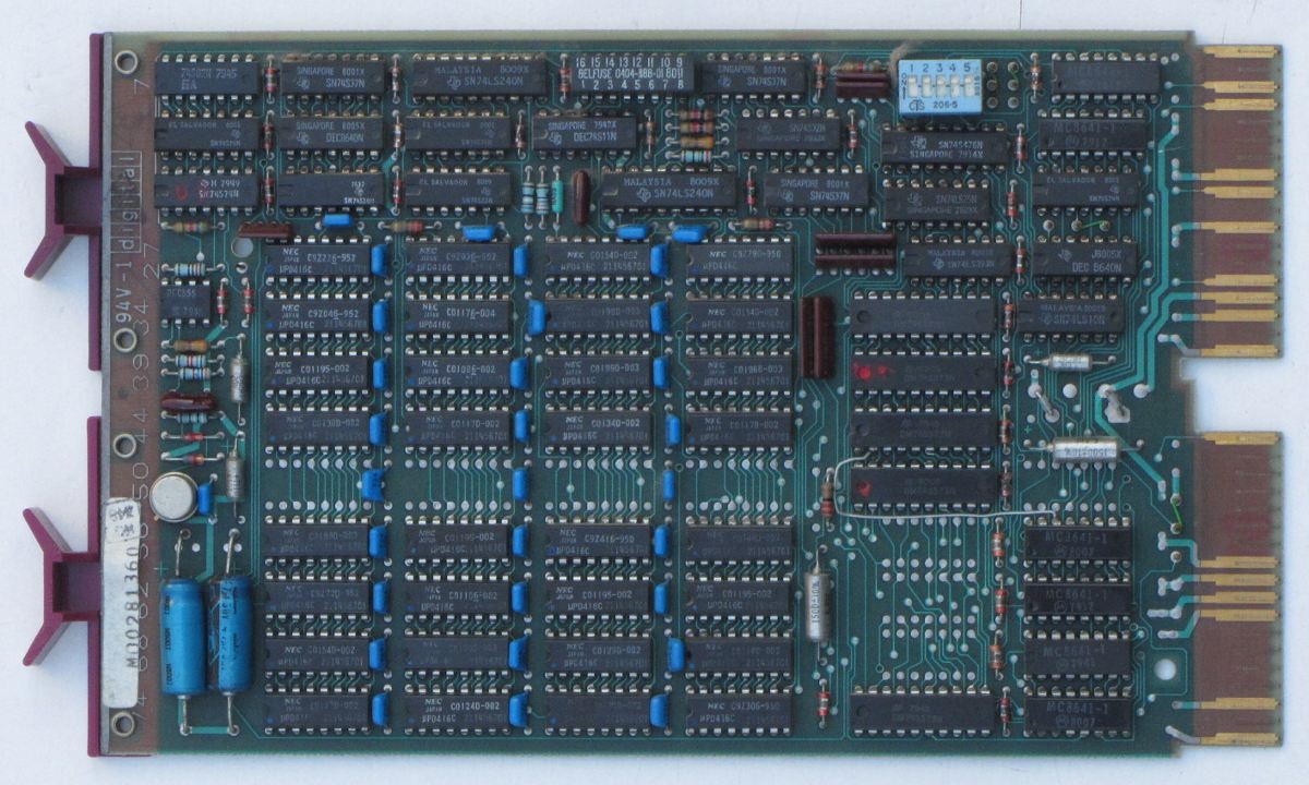 32 kW with Nec UPD416. The -5V required by the RAM chips is generated on board. Dynamic RAM refresh is also local. There is no parity bit on this board (MSV11-E only). |