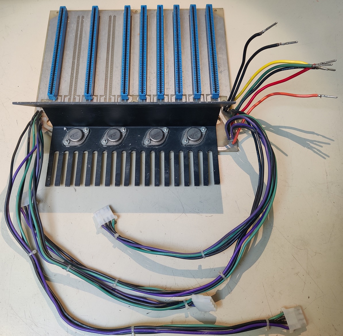 As is customary for S-100 bus systems, all boards regulate their own power. The backplane here contains the regulators for +5V and +12V volt for the floppy drives. |
