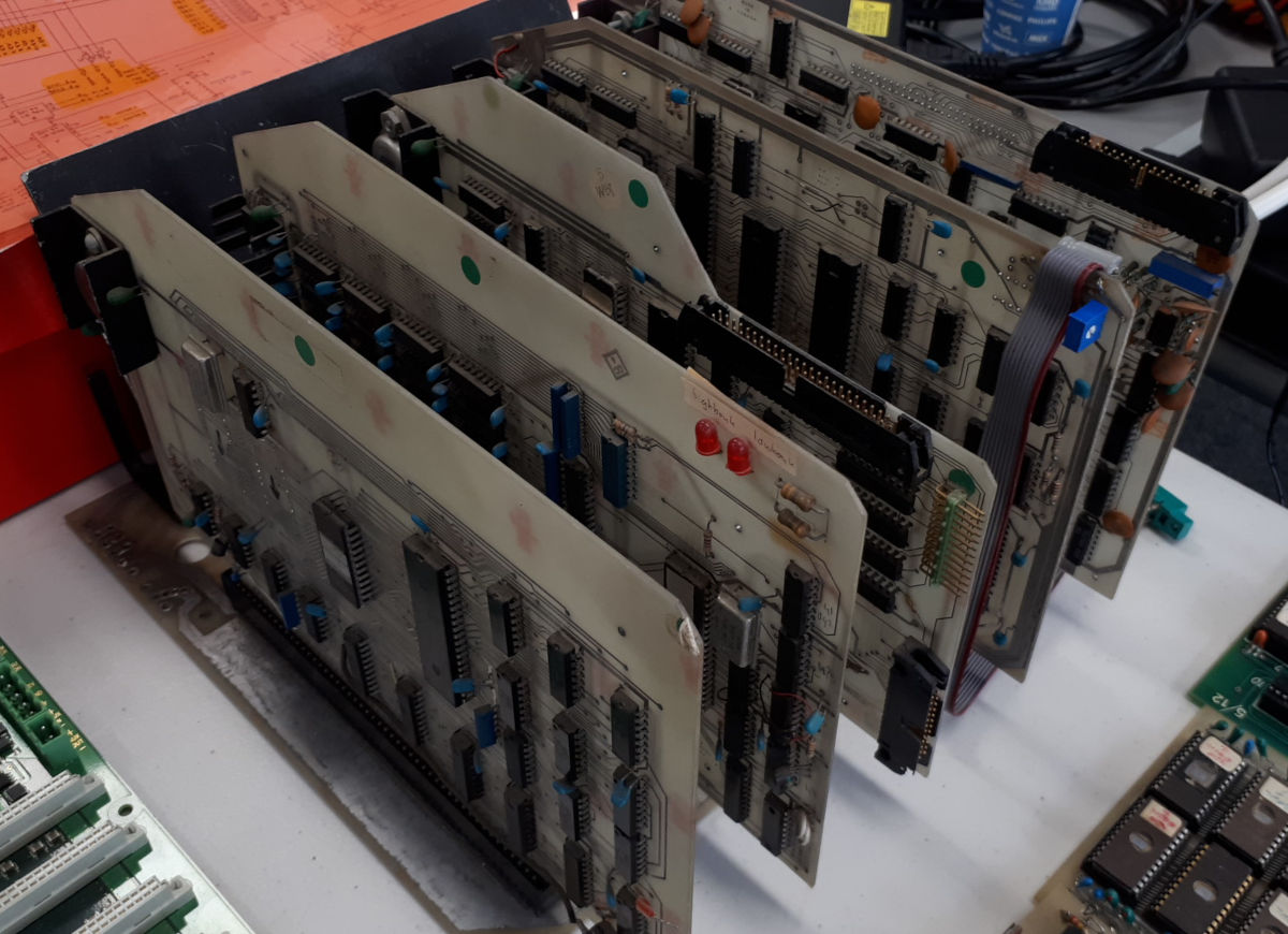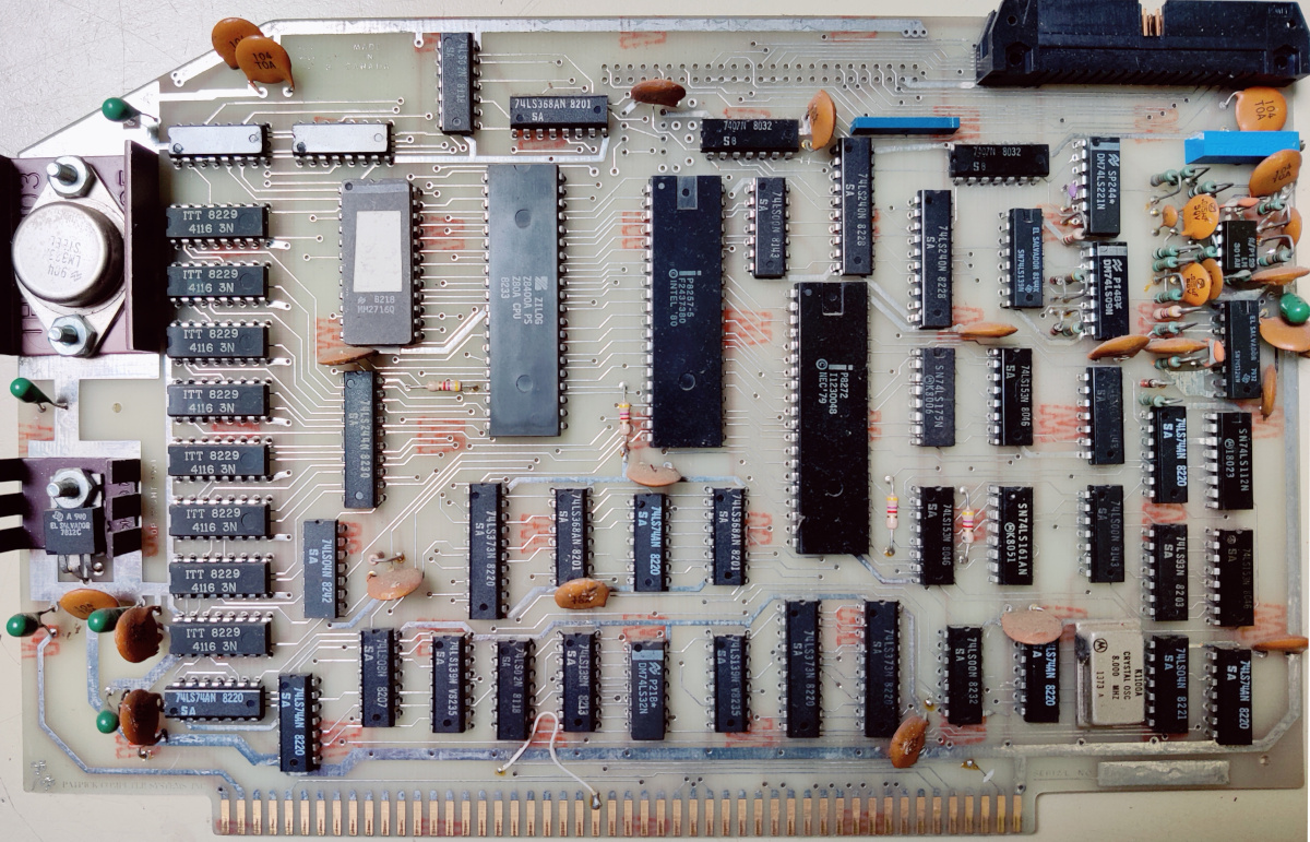 Intel D8202A memory controller and 4 banks of 16 kByte dynamic RAM. This board is the only one exposing more