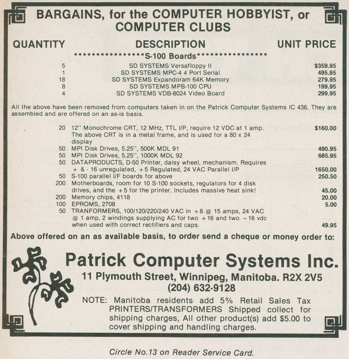 In the "Canadian business reader 1986", Robert Patrick relates how the company was started. It is unclear from when the interview is exactly, probably from 1982.