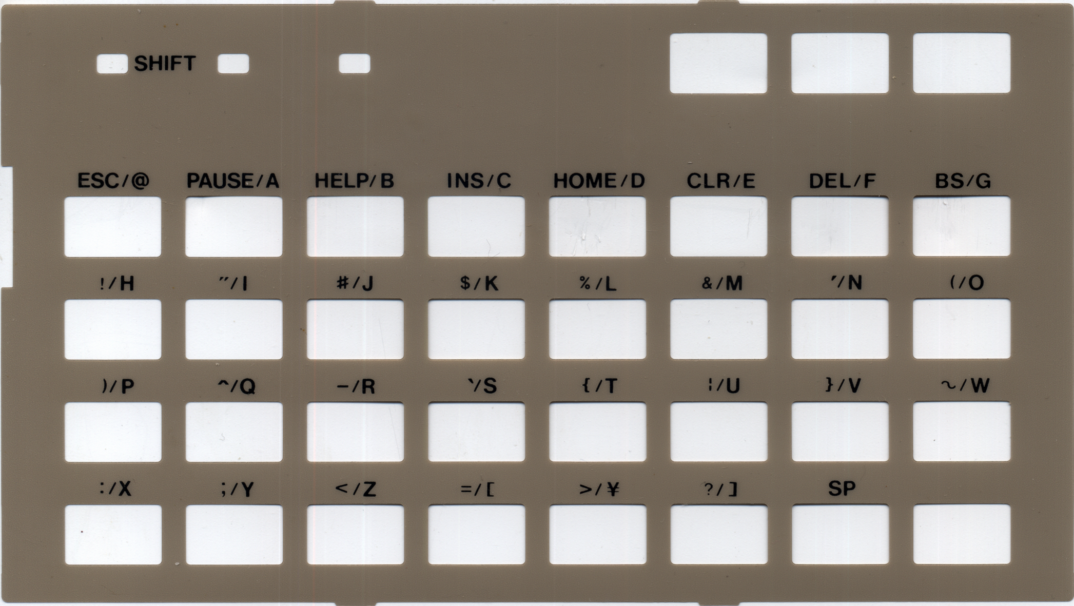The PX-4 at the left has an "Item keyboard" installed. Here is a hi-res scan of the overlay. |