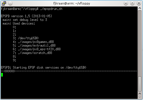 Vfloppy is a disk simulator for the Epson PX-4 and PX-8. It uses the epsp protocol used by the Epson TF-15, TF-20, PF-10 and compatible disk stations. It is written in C for Linux, and should be portable to any *nix with standard libraries. Apart from the program, only a serial port and a cable to connect it to the PX-4 or PX-8 is needed.