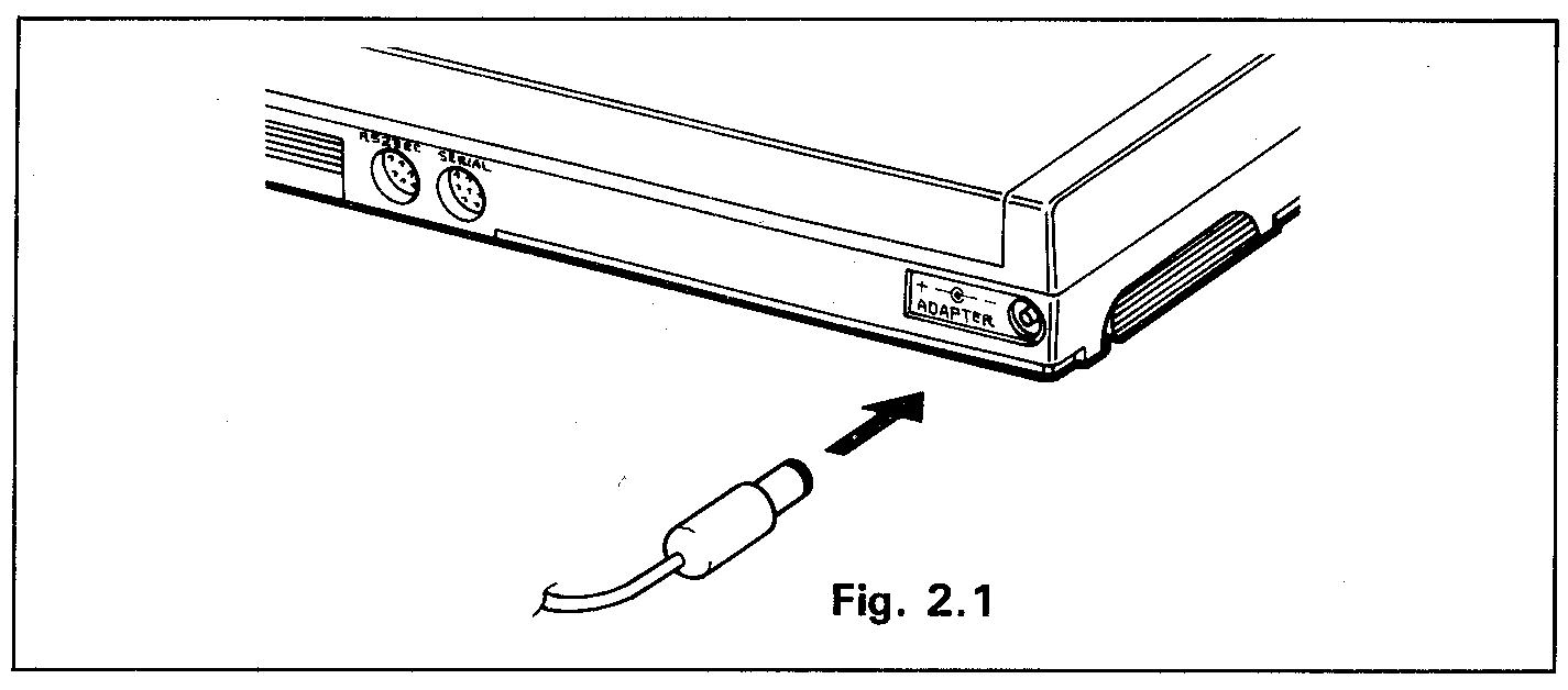 Then the power is automatically turned off and the backup battery takes over so that the program or work in progress is retained until the batteries can be re-charged. If the computer is not switched on the batteries are used to retain the contents of the memory. It is possible, therefore, for the batteries to be-come discharged. In order to prevent this the computer will normally be shipped with no main batteries. You should therefore proceed as follows: