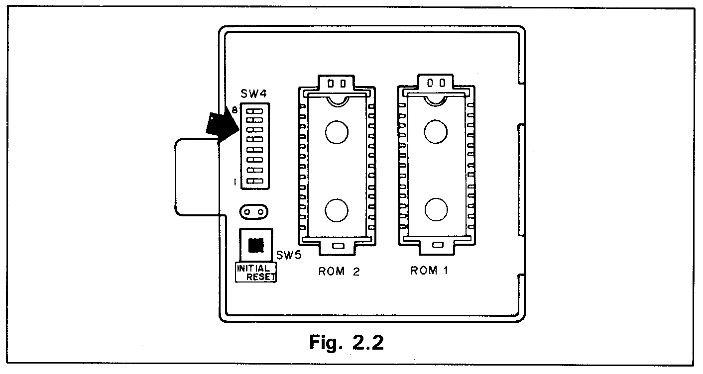 As mentioned in Chapter 1, all of the layouts of character keys shown in table 2.1 are available with your PX-8 regardless of the markings on the key tops. The keyboard layout can be altered by means of the DIP switch (SW 4) which lies under a cover beneath the PX-8 near the keyboard (see fig 2.2). It is also possible to alter the character set by means of software. This is described in Appendix A ‘ESC codes’ using ESC "C" and Chapter 3 under the CONFIG.