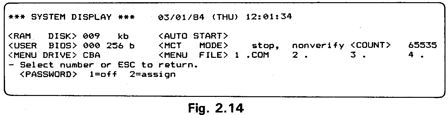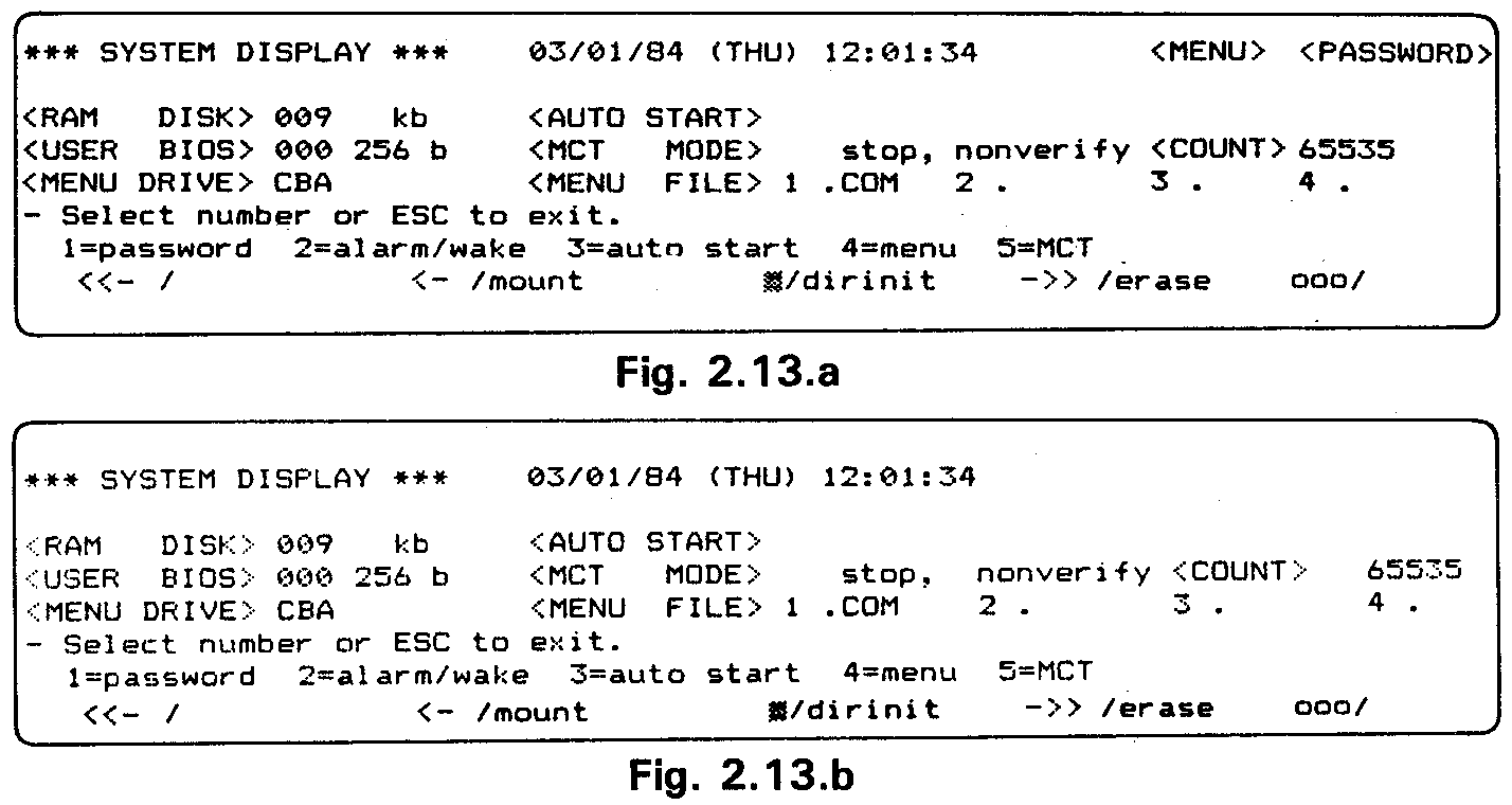 keys. For a description of how to change the parameters see the CONFIG program in Chapter 3, and section 2.2.3a. Details of which parameters are changed by the CONFIG program and which by the System Display can be found from table 2.2.