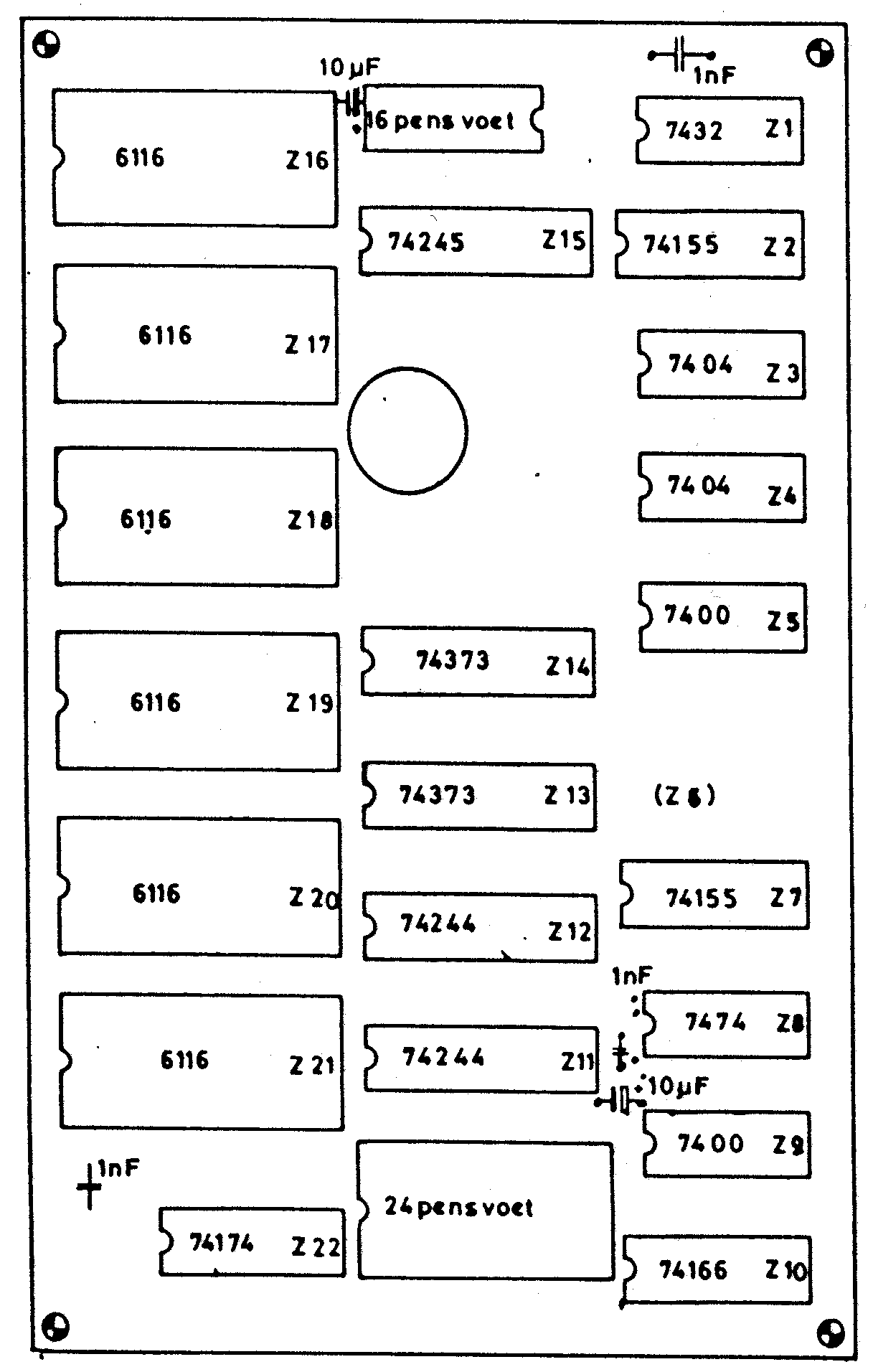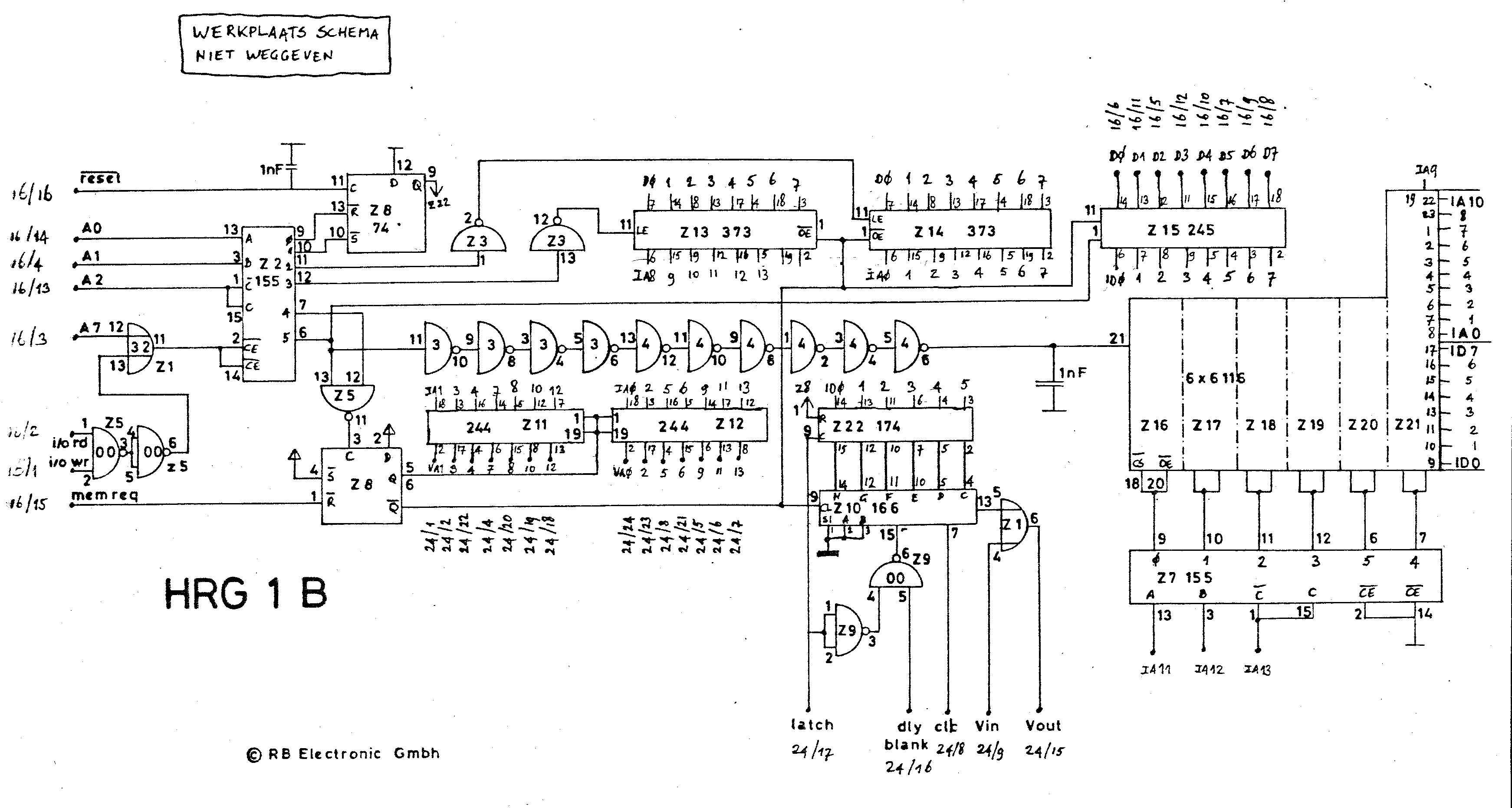 Port 0 disables the HRG1, port 1 enables it. Port 4 reads six bits from the HRG1 memory, port 5 writes six bits to the HRG1. Port 2 and 3 are used to program addressing: